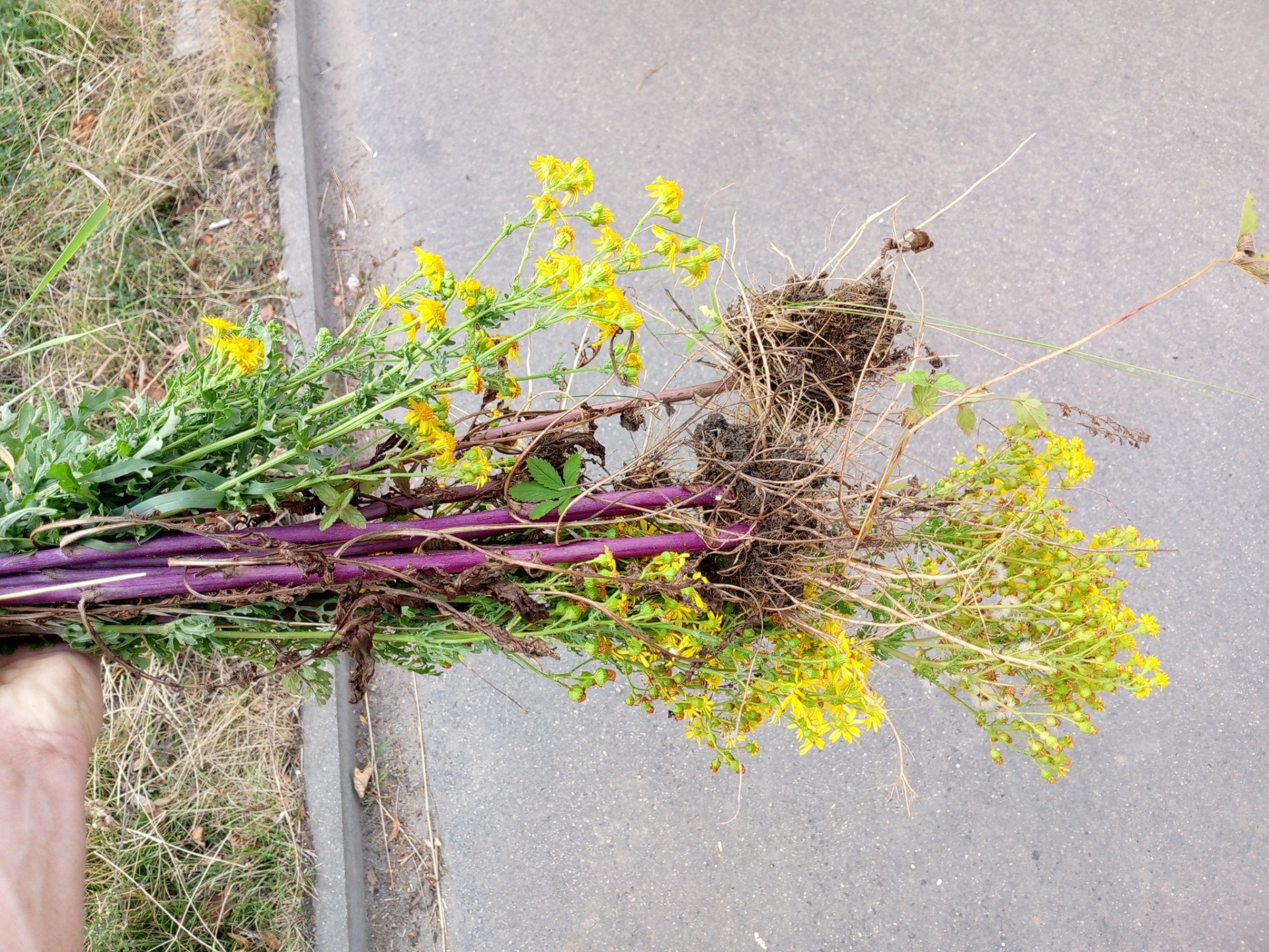 Průběžně sesekáváme nedopasky po pastvě krav. Zabraňujeme tím šíření těch druhů, které kravám příliš nechutnají na úkor těch chutnějších. Vzhledem k letošnímu suchu a teplu se potýkáme s velmi se šířícím starčekem přímětníkem. Je to dvouletá až slabě vytrvalá žlutě kvetoucí rostlina, která je pro zvířata velmi jedovatá. Obsahuje alkaloidy, které se neodbourávají a způsobují chronické otravy. Kromě toho mohou přecházet i do masa a mléka. Jako jeden z mála jedovatých rostlin si zachovává vlastnosti i po usušení v seně. Všechny pastviny před vypuštěním zvířat i před sečením tedy pečlivě kontrolujeme a starček vytrháváme. Prosíme, abyste dodržovali zákaz krmení